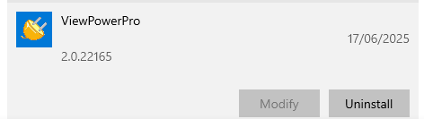 | ViewPowerPro | Downloads | 2.0-25210 | 2.0-22165 mismatch | Confirmed as still vulnerable to CVE-2022-31491 |